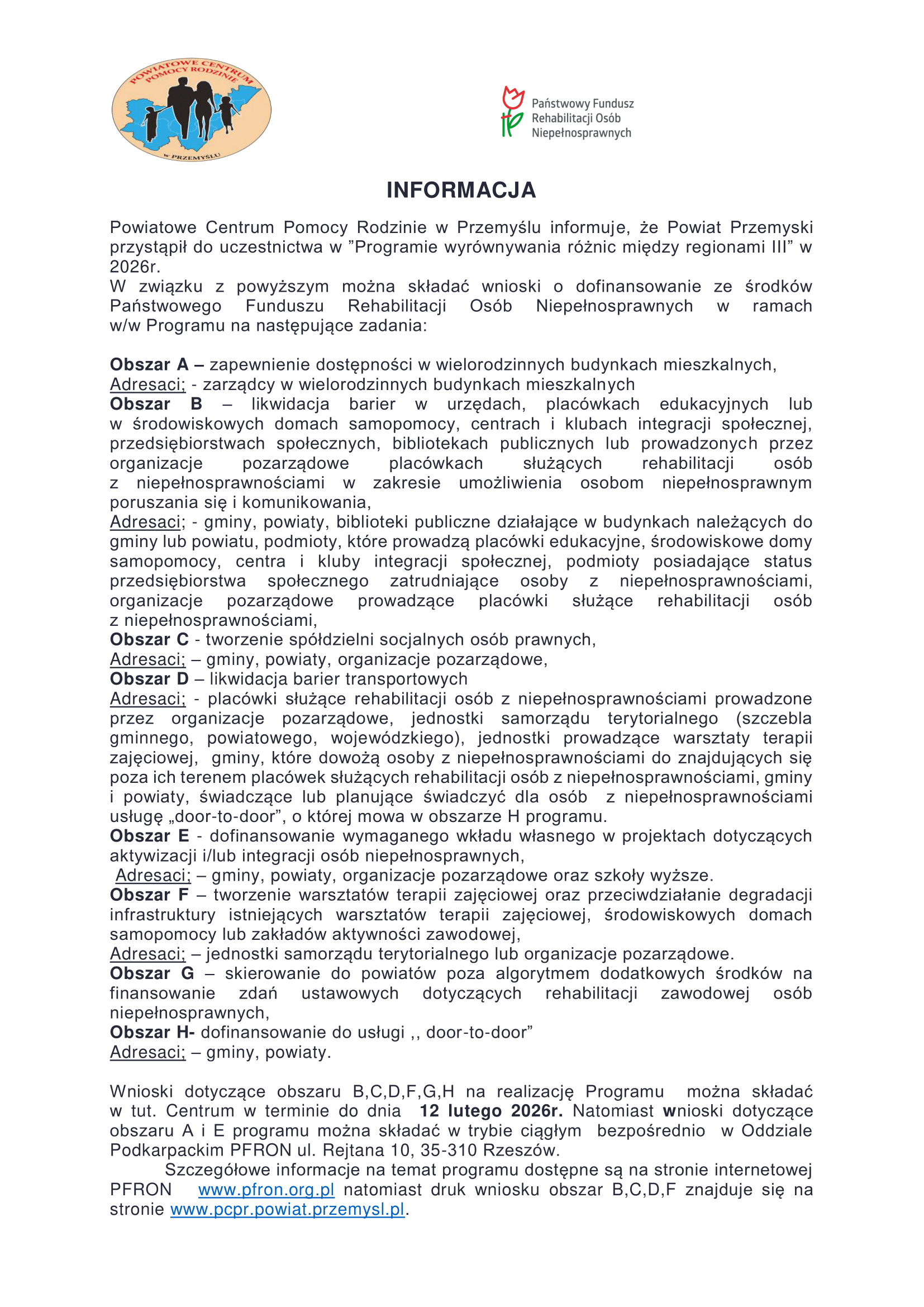 Uprzejmie informujemy o przystąpieniu Powiatu Przemyskiego do Programu „Asystent osobisty osoby z niepełnosprawnością” dla Jednostek Samorządu Terytorialnego – edycja 2026. Program finansowany jest ze środków Funduszu Solidarnościowego.